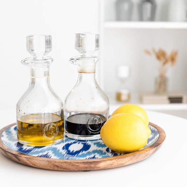 This charming cake stand features a beautifully detailed blue-and-white enamel inlay—evoking classic toile patterns and timeless floral motifs. The rich wood grain offers a warm contrast to the intricate design, making it a true showpiece for your table. Perfect for showcasing cakes, tarts, or pies, it brings effortless elegance to any occasion—from intimate gatherings to celebratory soirées. Complete with a matching cake server, this set makes a thoughtful gift or a stunning addition to your own hosting collection. Note: Each product is unique and slight contrasts may appear from one product to another. Care Instructions: Not microwave or dishwasher safe....