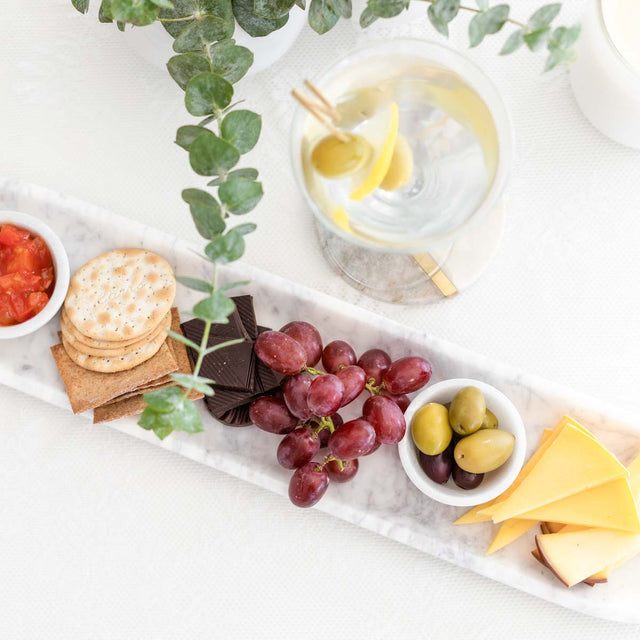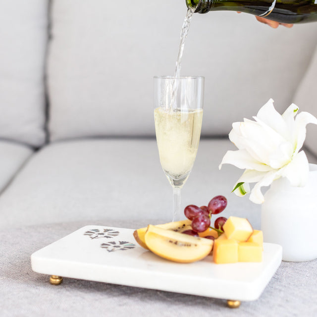Add a sweet touch to your gatherings with our marble platter adorned with Abalone motif. Our serving platter offers a chic presentation to everything from small bites to cheese & desserts. Beautifully handcrafted by skilled artisans, the one-of-a-kind board compliments any style of cheese knives and plates, a perfect masterpiece for gifting Note: Each piece is unique in that the marble, as a natural stone, varies in pattern, color and grain. Some pieces may have natural cracking, fissures and pits. These variations are by no means a fault, but it adds to the natural beauty of the product. Care Instructions:...